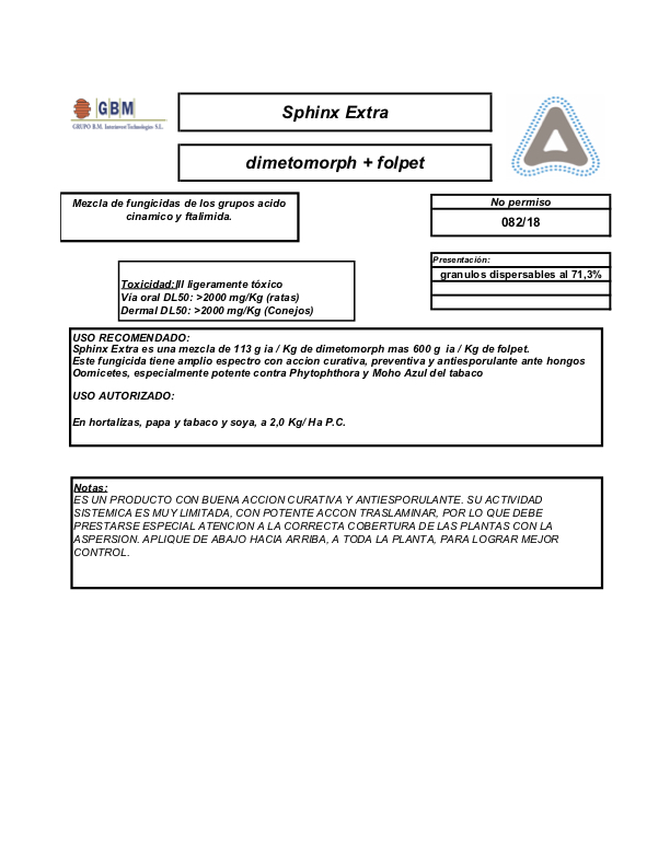 Sphinx Extra WDG es la mezcla de dos fungicidas. Actúa por contacto y translaminar, y tiene efecto antiesporulante. La combinación de múltiples sitios de acción y la inhibición completa de la actividad esporulatoria de Sphinx Extra WDG, ayuda a prevenir la propagación de la enfermedad entre las plantas.